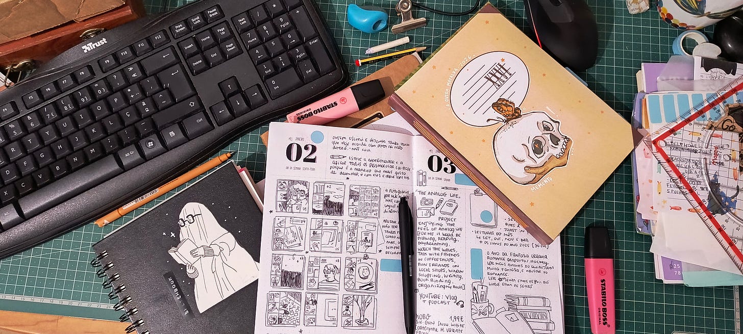 Partilho os materiais que usei para ajudar a desconstruir a ideia (ridicula) que para se fazer journalling, desenhar, criar é necessário materiais xpto (ou novos).